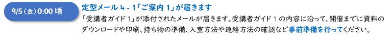 2025/9/16受講前にお読みください 内【Part 1 トレーニングまでに】末尾の「受講者ガイド 1」も含め、すべての情報提供終了
