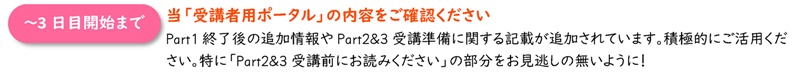 2025/9/28 開始直後Part 2&3 受講前にお読みください 内【トレーニング Part 2&3 までに】末尾の受講者ガイド 2 以外の情報提供終了