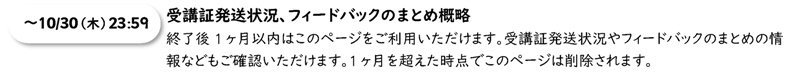 それ以外にも有用な情報、ホームページや動画などへのリンクが提供されていますので、学びたい方は受講後 1 ヶ月までの利用可能期間にとことん使い倒す意気込みでどうぞ!