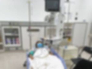 以上の結果から【肝膿瘍】と診断される。このときには【敗血症】も併発していて、緊急手術(ドレナージといい、管を肝臓にできた膿のかたまりの中に挿入し、直接膿を吸い出す)。