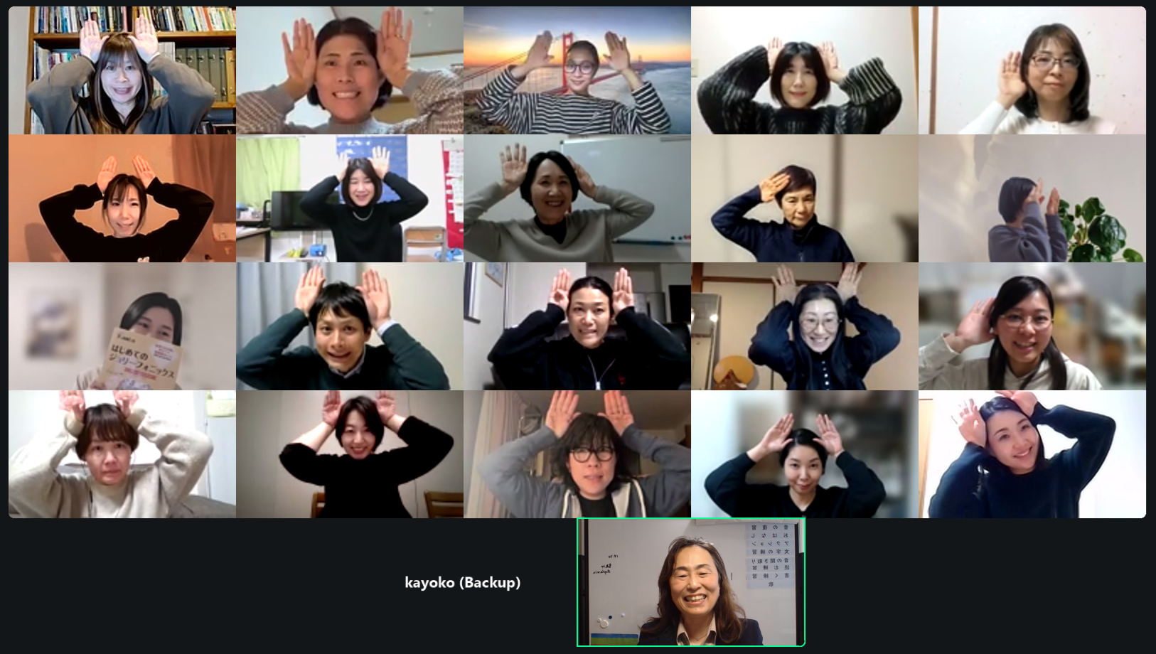 年度末ということもありご自身の教室のまとめ、新年度への準備でお忙しいところ、たくさんの方にご参加いただけたこと、心より感謝しております。私のトレーニングには指導者の方だけではなく、保護者の方も多くご参加くださいます。バックグランドが異なる者同士、北海道、九州、四国、本州にそれぞれお住まいの方が 20 時間一緒に学ぶ時間はとても貴重で、最後は私もうるうるきてしまいます。