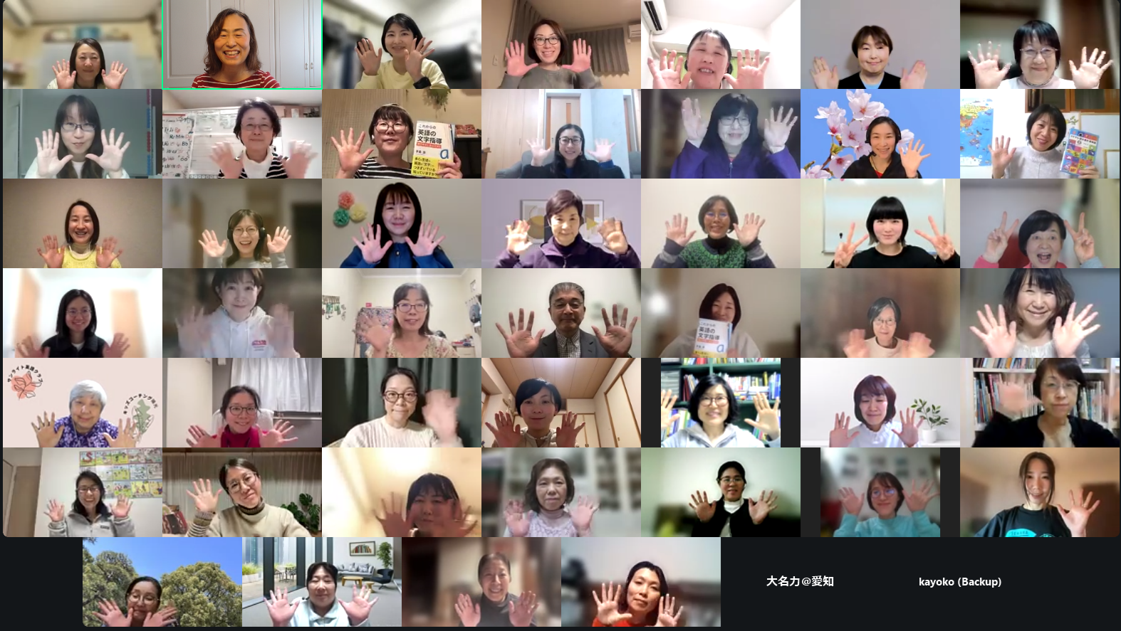 今はその後悔を打ち消すように中学校の自己紹介で「英語が得意です。」と言いたくなる子供になるように教える努力をしています。とっても学ぶことが多い 2 時間でした。ありがとうございました。